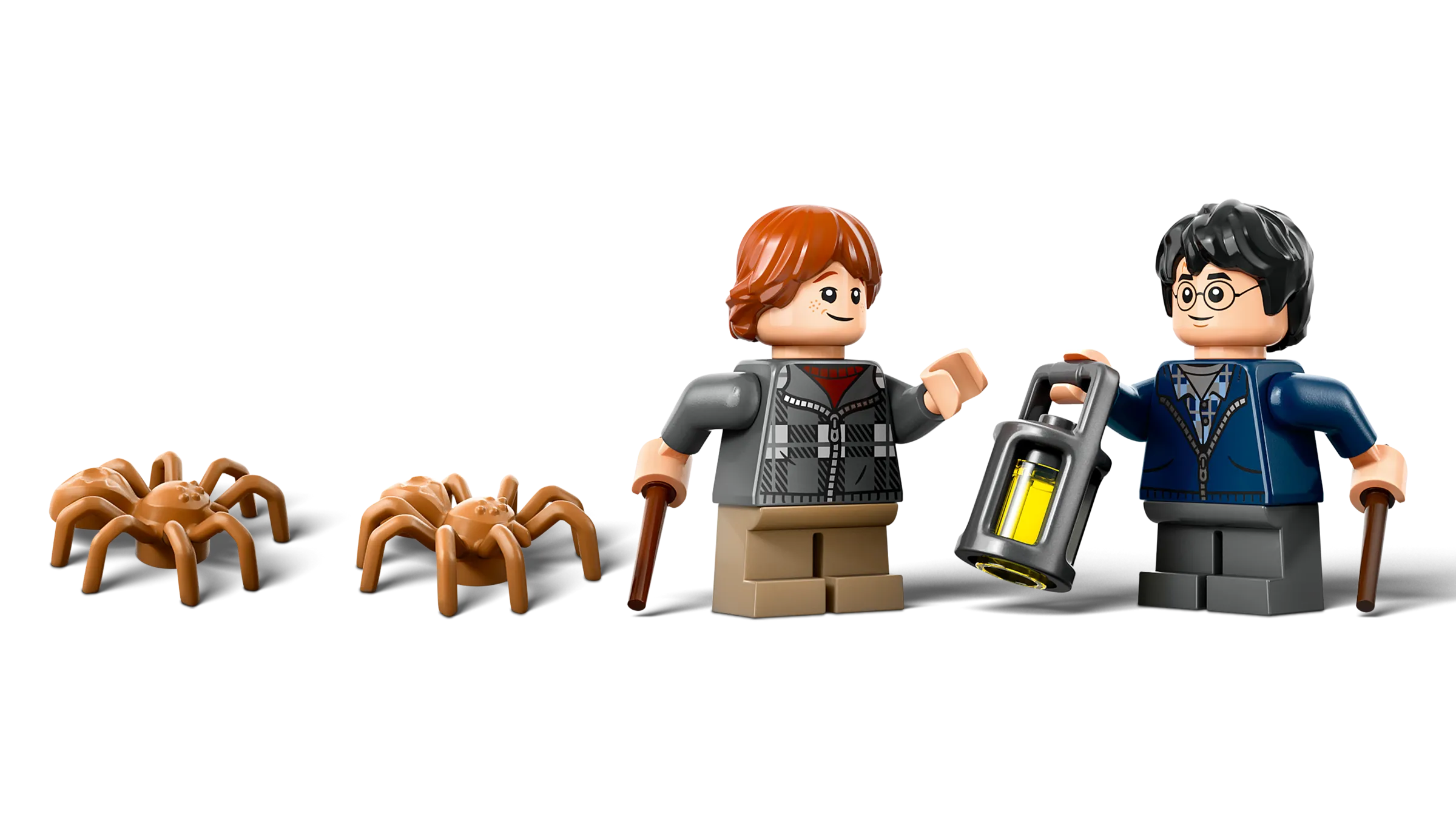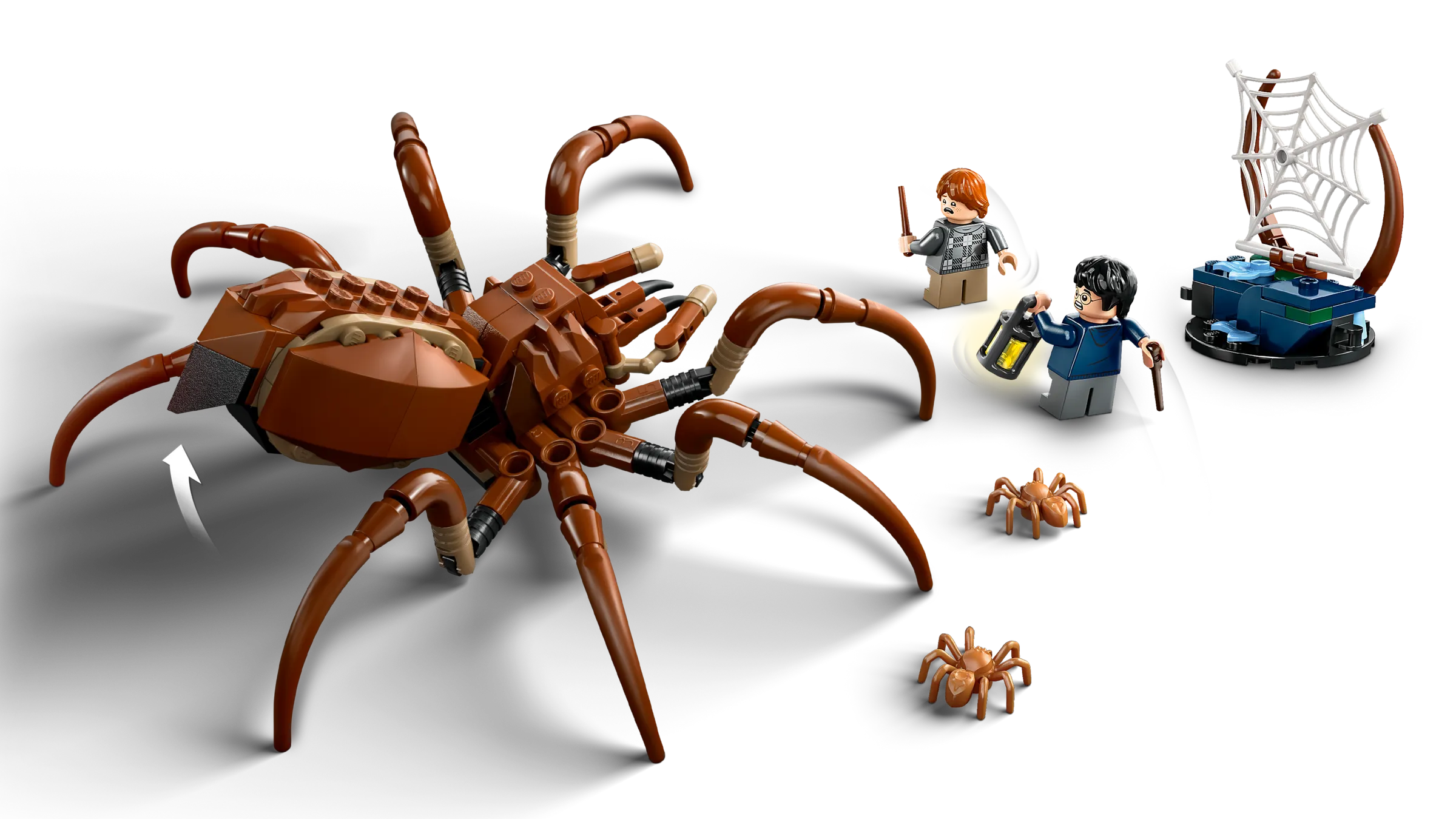 Hvem tør bevæge sig ind i Den Forbudte Skov med Harry Potter™ og Ron Weasley™? Hvis du gør, så lad Ron gå forrest med sin lygte. Men pas på edderkoppespindet og den skræmmende acromantula Aragog! Den enorme skabning har lange ben og store hugtænder. Brug Harry og Rons tryllestave til at kaste en besværgelse og flygte!