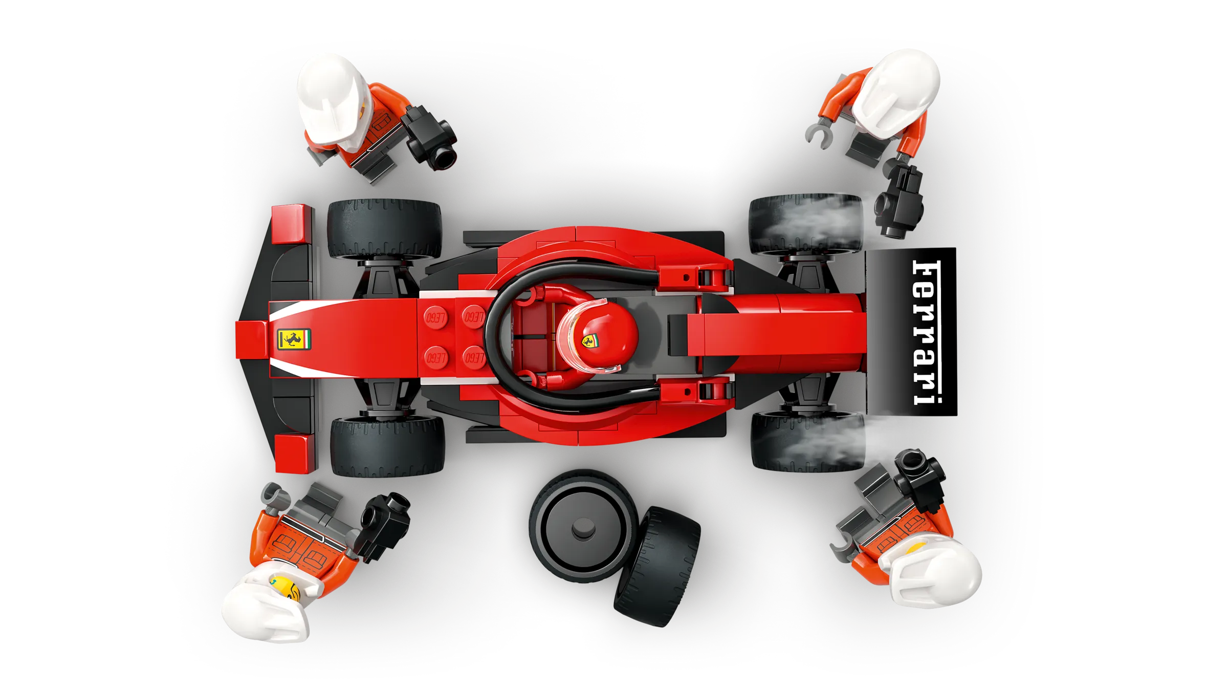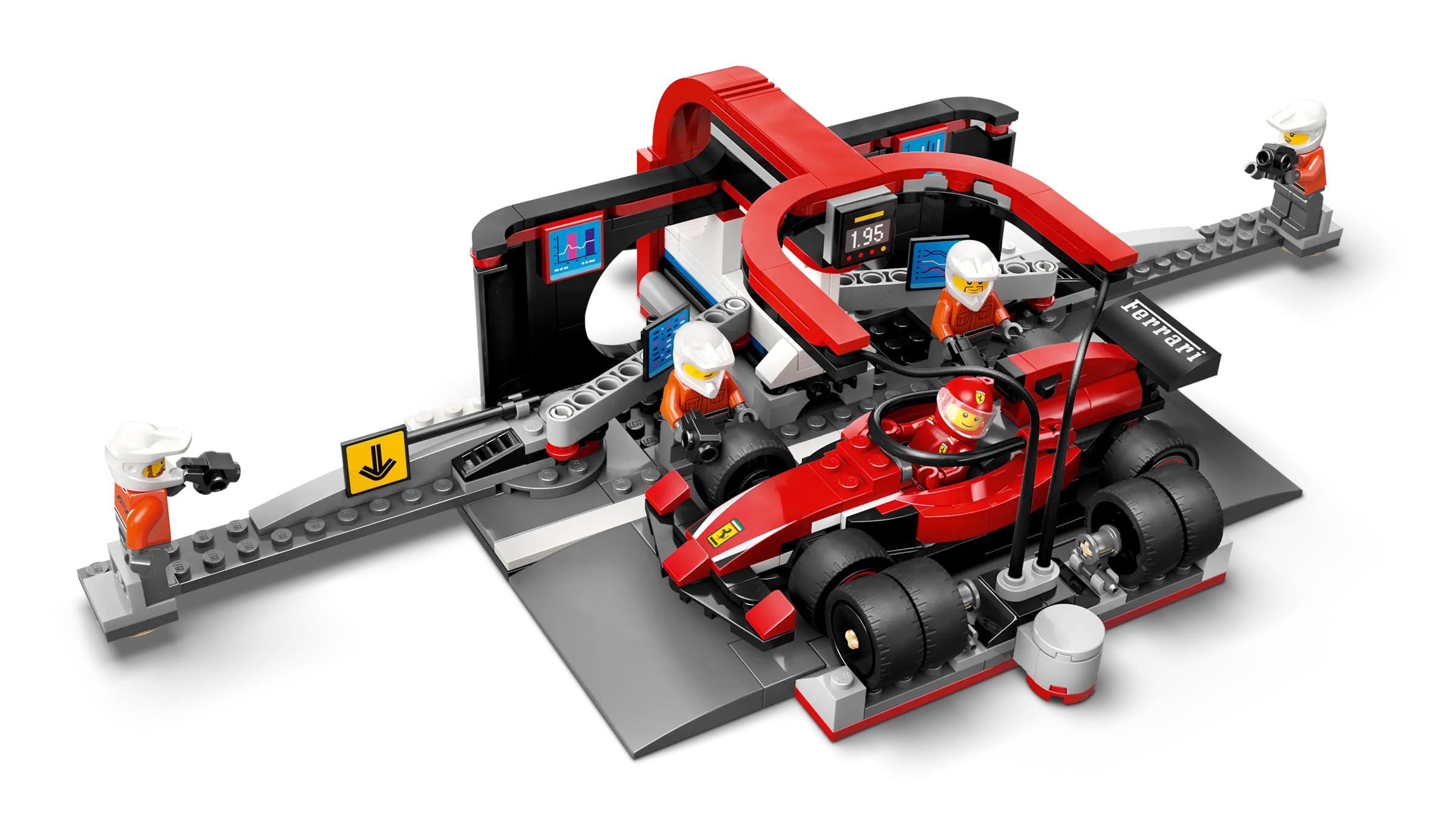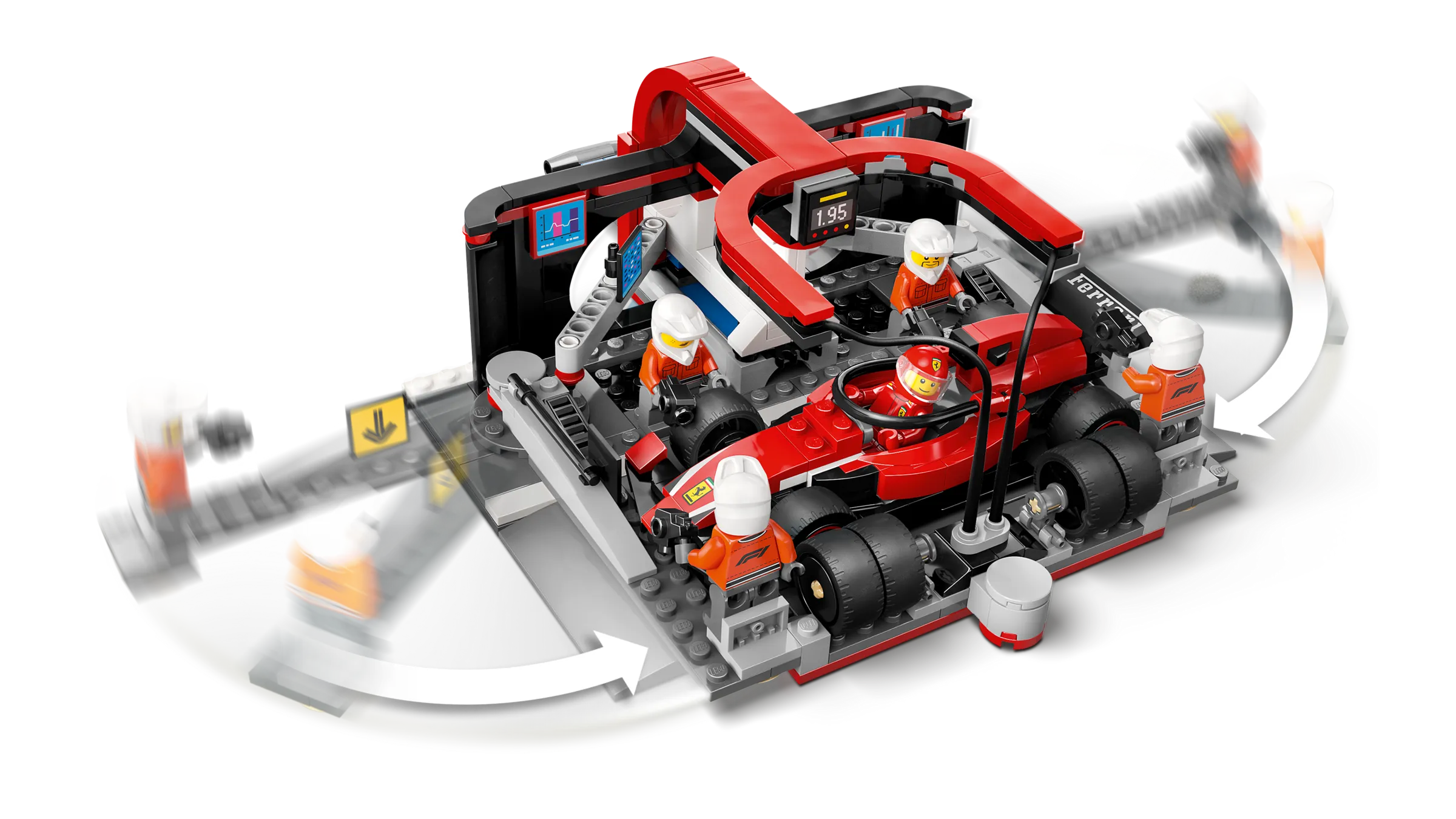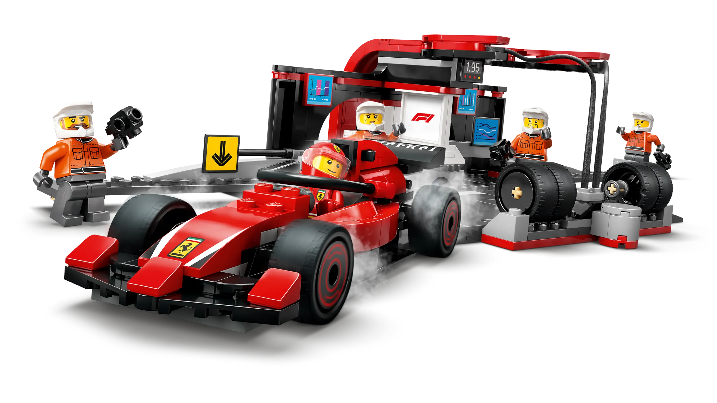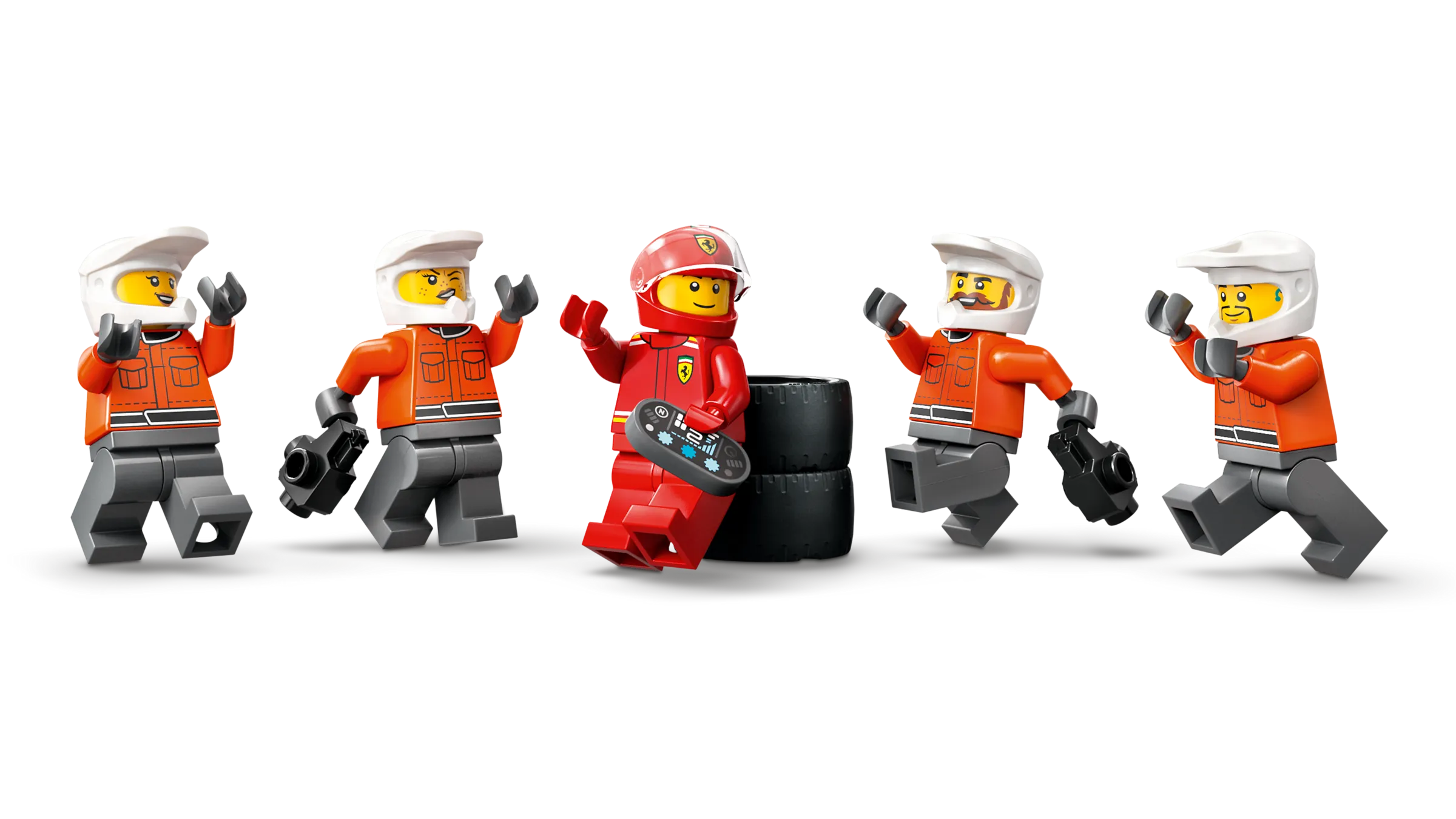 Freu dich auf rasanten Actionspaß in der F1® Ferrari Box! Schick die Boxencrew los und ruf den Ferrari-Rennfahrer zu einem superschnellen Boxenstopp herein. Prüfe den Motor und benutze die Schlagschrauber für einen blitzschnellen Reifenwechsel. Lass den Flitzer dann aus der Boxengasse in eine rekordverdächtige Rennrunde losdüsen! Freu dich auf tolle F1-Boxenstopp-Abenteuer in LEGO® City!