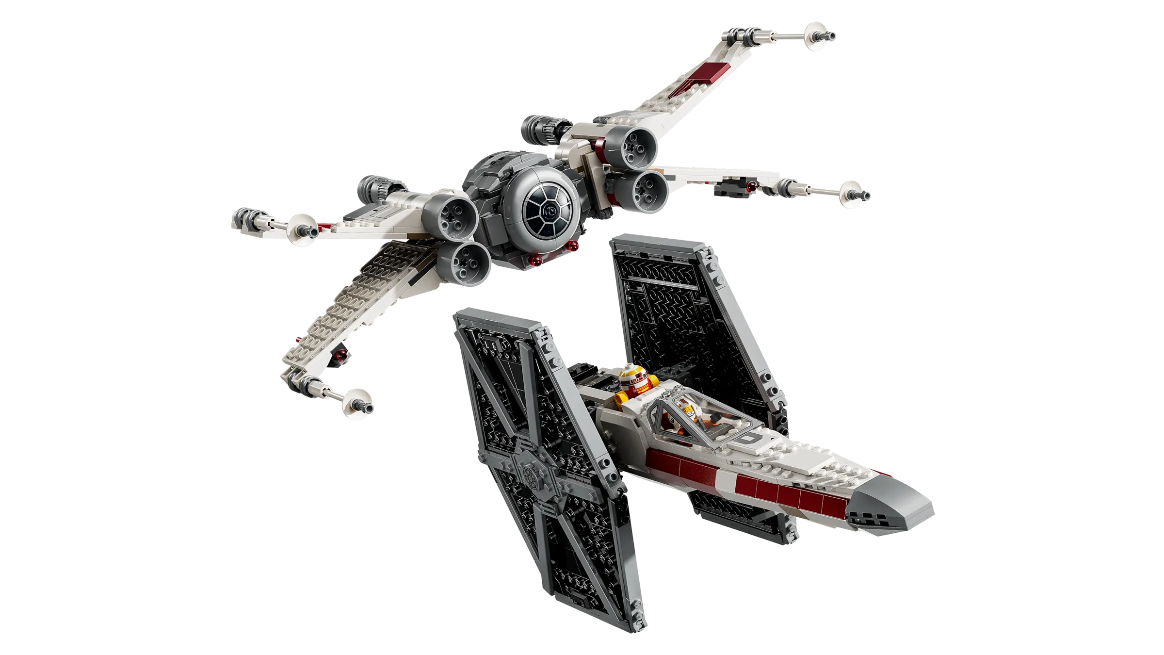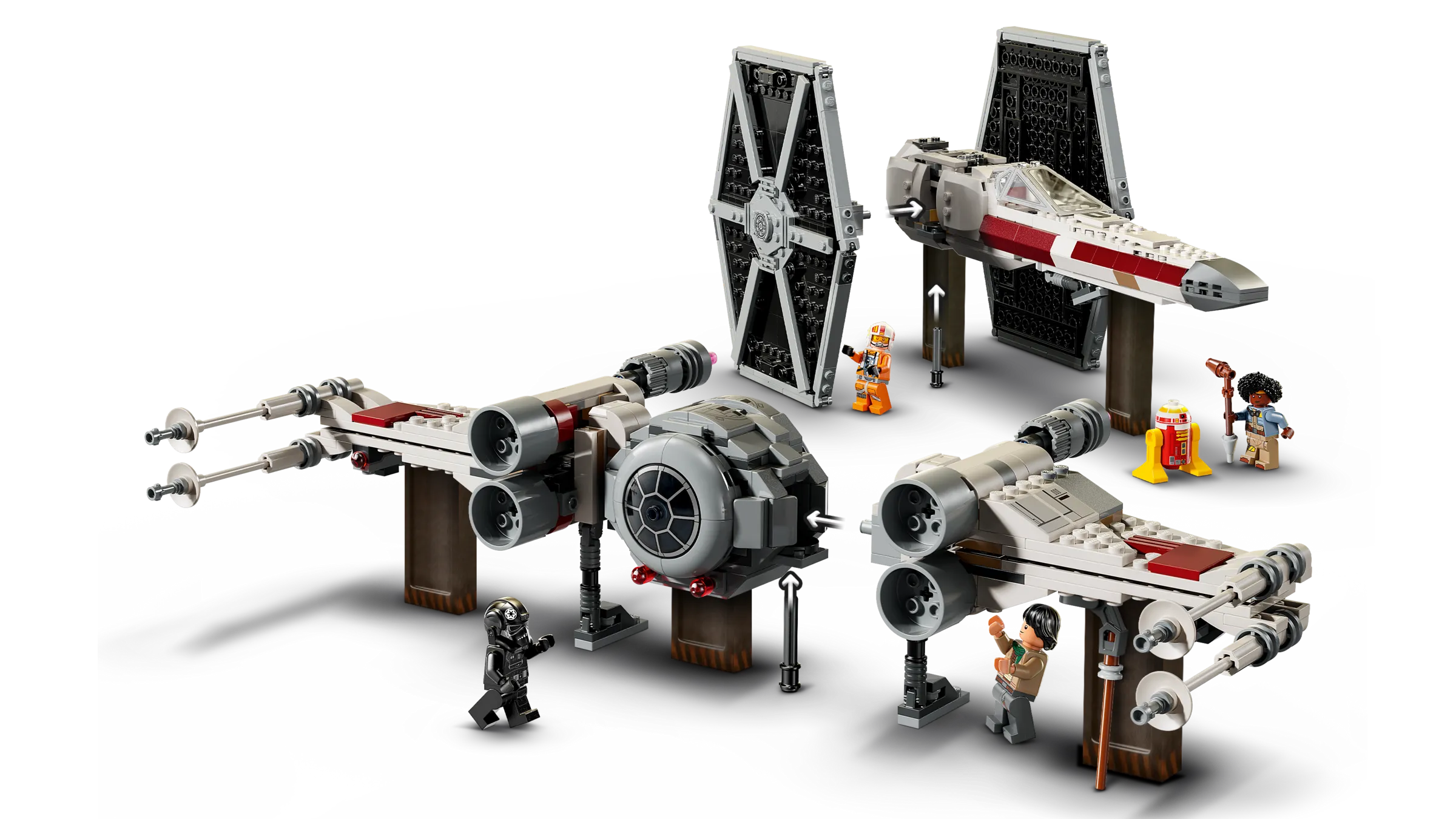 Vermische 2 legendäre Star Wars™ Sternjäger! Nimm den Rumpf des TIE Fighters und die Flügel des X-Wings, um einen „X-Fighter“ bauen – oder andersherum einen „TIE Wing“. Starte deine Mission mit einem Rebellen- oder TIE-Piloten im Cockpit und mit dem Droiden L3-G0 an Bord. Beide Sternjäger haben Shooter mit Federmechanismus. Oder baue die klassischen Vorbilder – den TIE Fighter und den X-Wing!