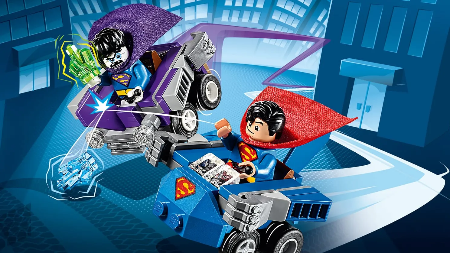 Düse los und schnapp dir Bizarro™, falls es dir gelingt! Wer weiß, welche Richtung Supermans unvollkommener Widersacher in seinem spiegelverkehrten Mighty-Micros-Auto als Nächstes einschlagen wird. Benutze das blaue Kryptonit, um Bizarros Energie aufzuzehren, aber hüte dich vor dem grünen Kryptonit! Lass die Riesenfäuste zusammenprallen, um zu sehen, wer aus diesem verrückten Kräftemessen als Sieger hervorgehen wird.