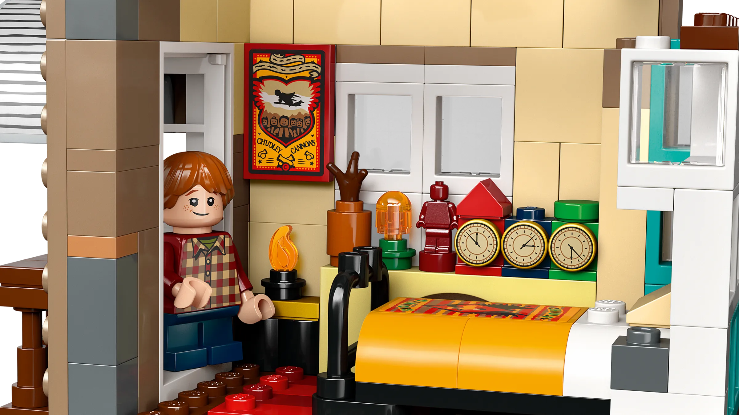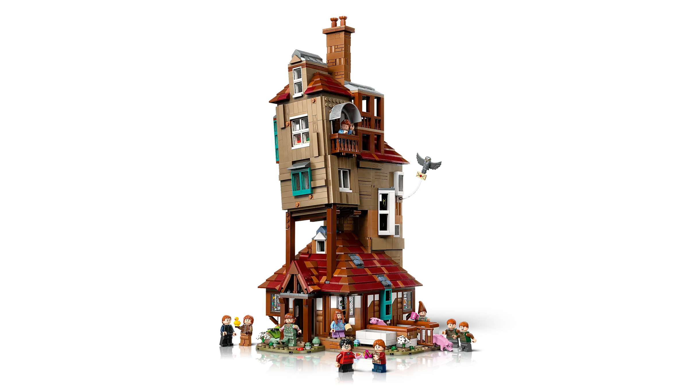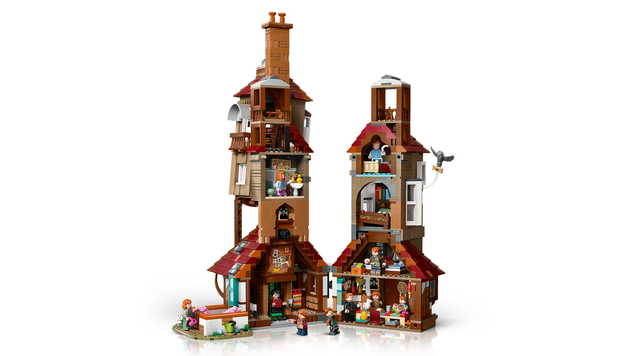 Füge den Fuchsbau zu deiner LEGO® Harry Potter™ Kollektion wichtiger Orte in der Zauberwelt hinzu. Benutze spezielle Bautechniken, um dem Zuhause der Weasleys seinen klapprigen Look zu verpassen. Voll aufgeklappt sind in dem Modell viele authentische Details und magische Funktionen zu erkennen. Im Kamin befindet sich zum Beispiel die Flohnetzwerk-Funktion, um eine Minifigur verschwinden zu lassen!