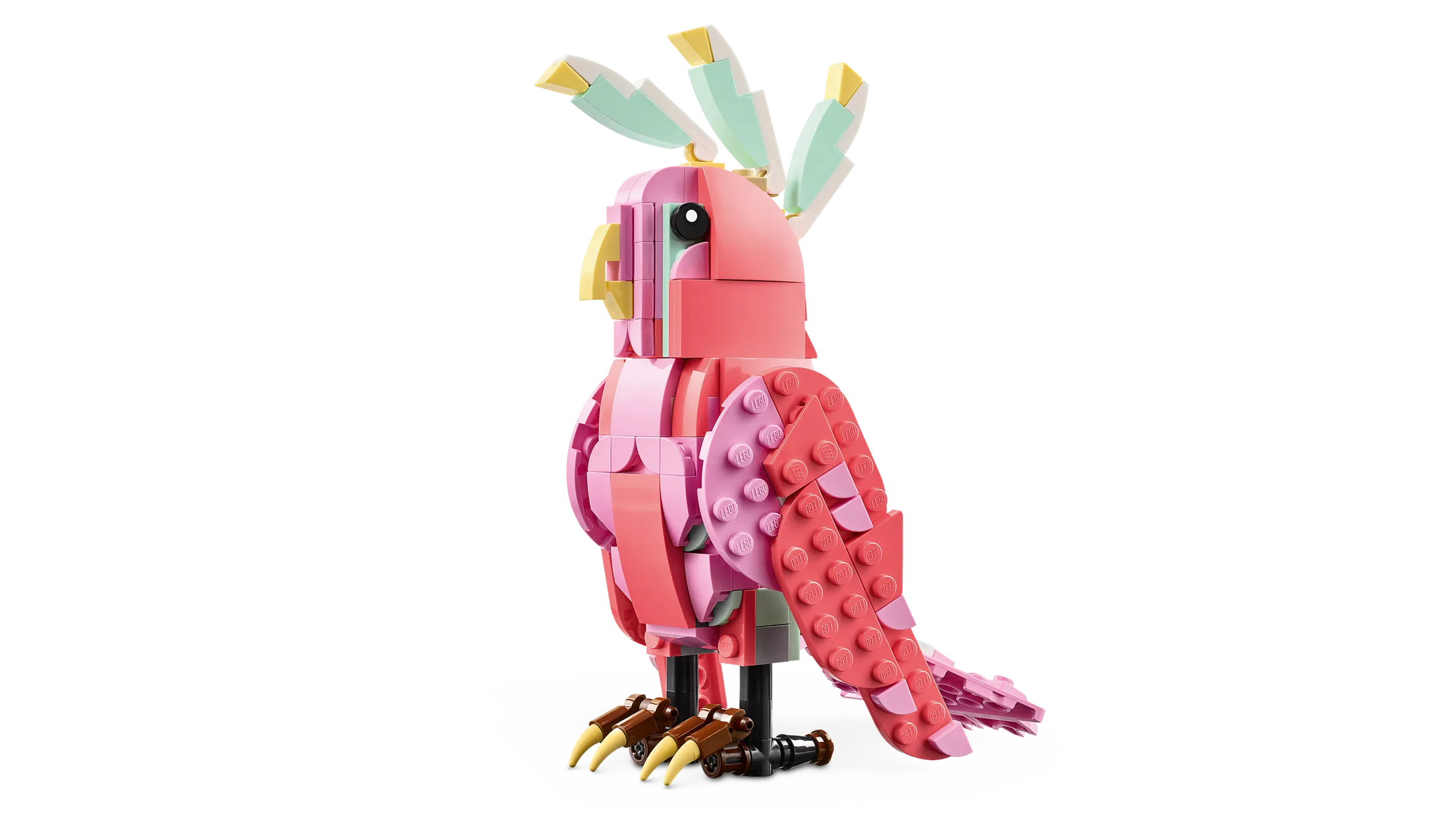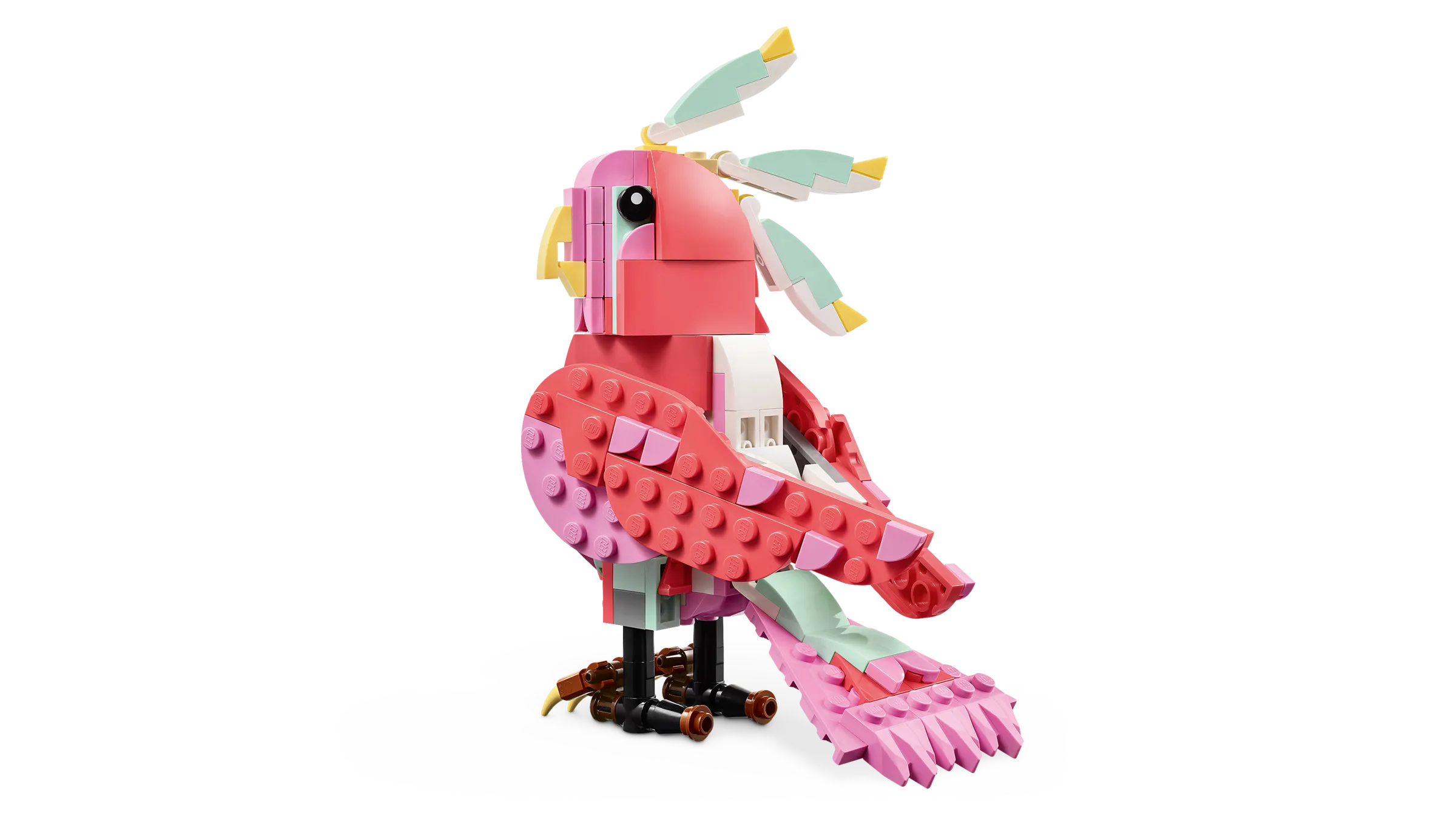 Bring the beauty and colour of a tropical island into your room with these 3 stunning wild animals! Watch as a graceful pink flamingo stands on a plant-filled riverbank before having a drink. For more fun animal action, rebuild it into a beautifulcockatoo, which can completely rotate its head, or an adorable axolotl. What will you build? The choice is yours with this fun 3in1 set.