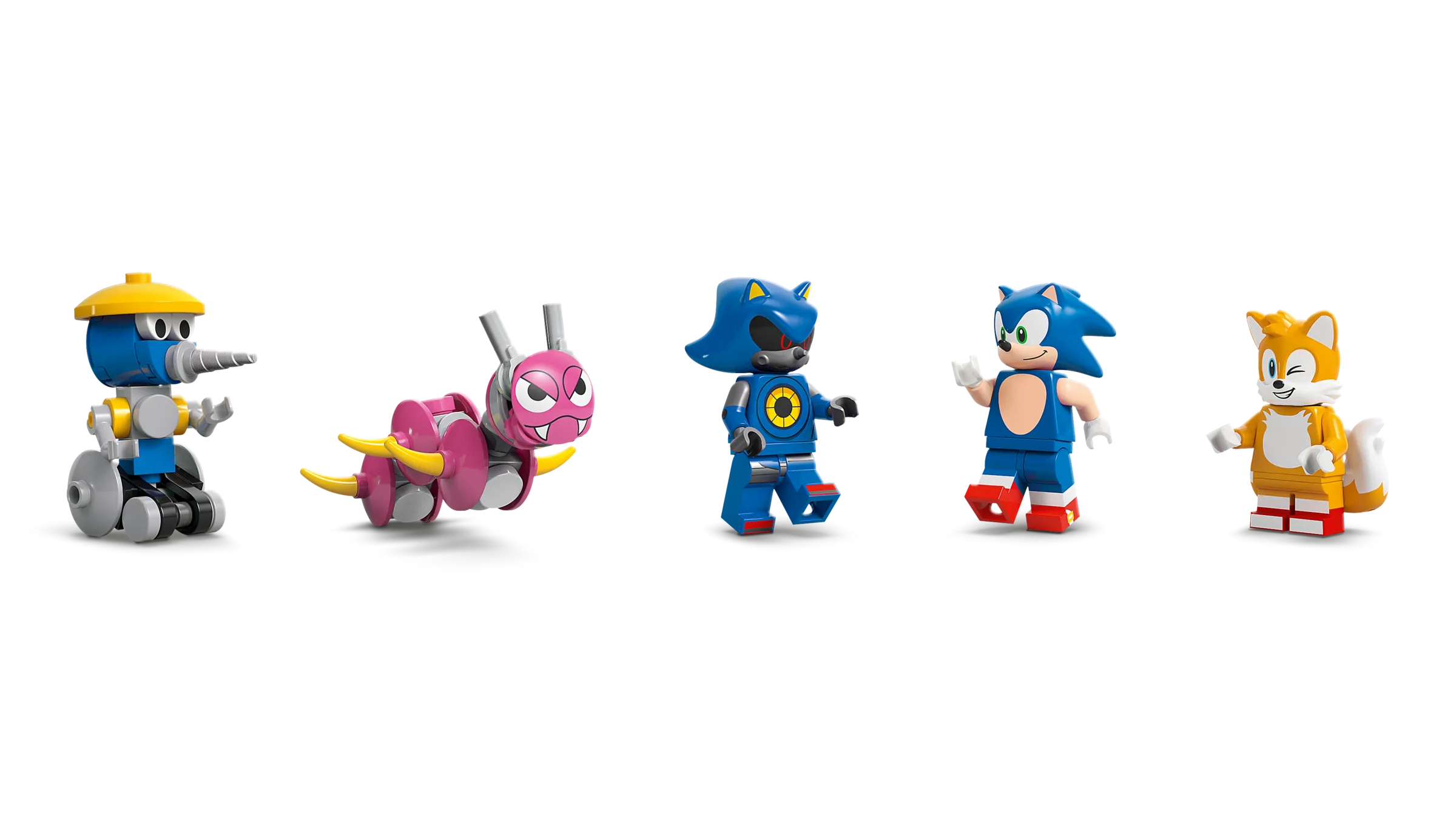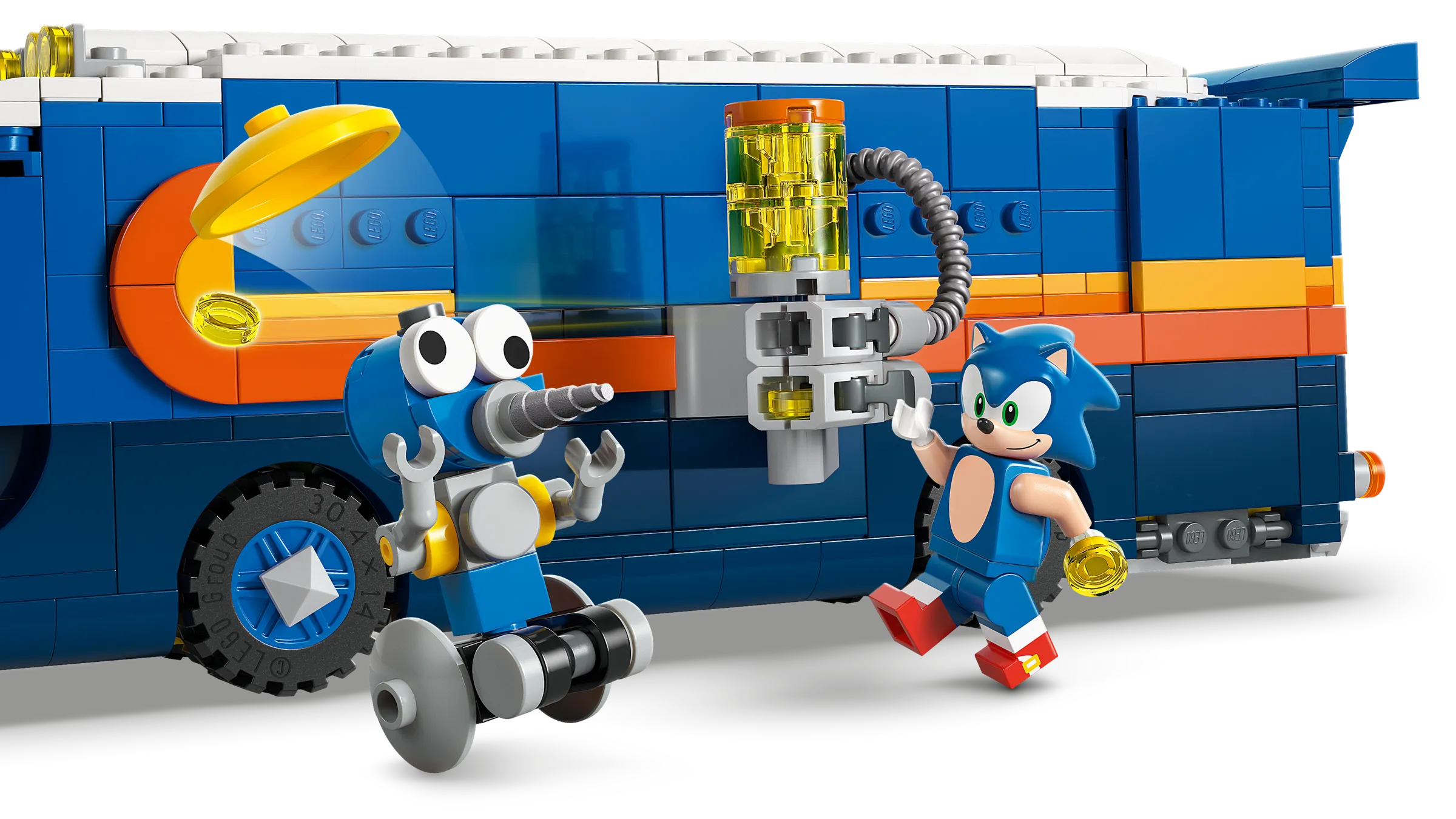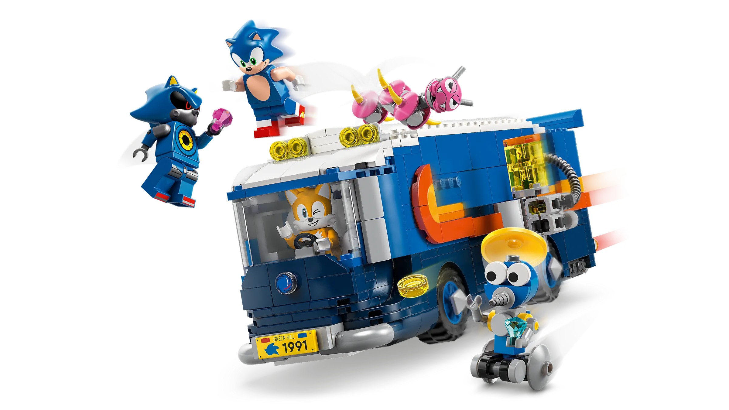 Hit the road with Sonic and Tails in their command truck! Need a break? Pull over and lift the roof to access the beds, game room and sound system, which Sonic can use to spin some beats. Time for table tennis! Hold on: Metal Sonic, Burrobot and Caterkiller are attacking! Sonic can handle Metal Sonic and Tails can hop on the ATV to tackle the Badniks. Then back to the truck for fun and chillaxing!