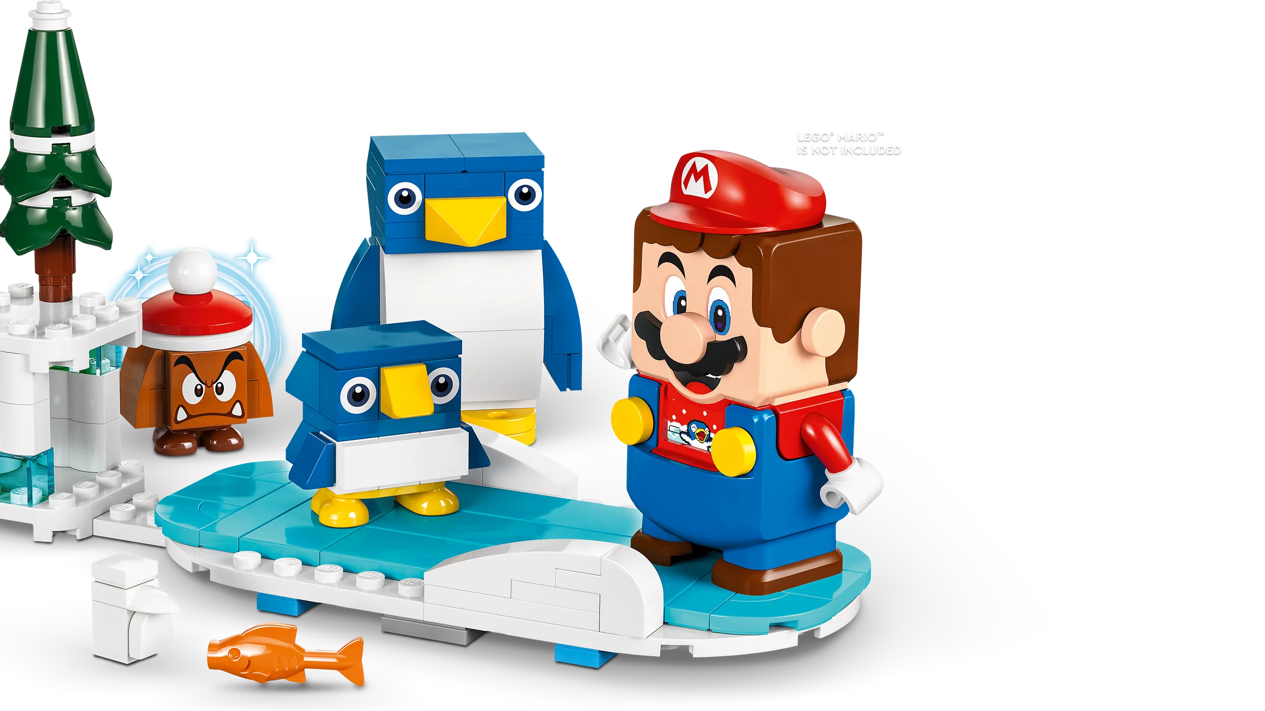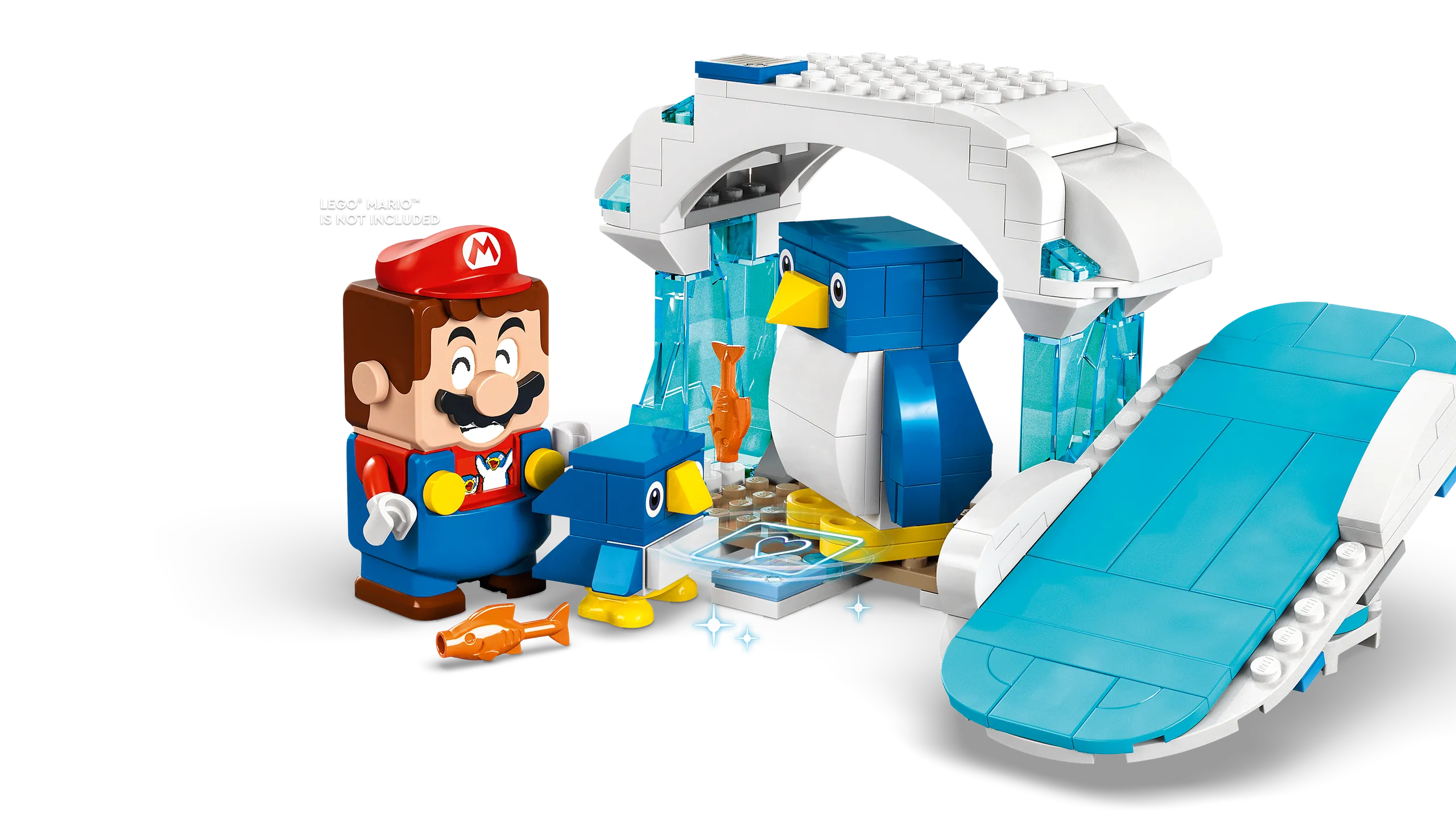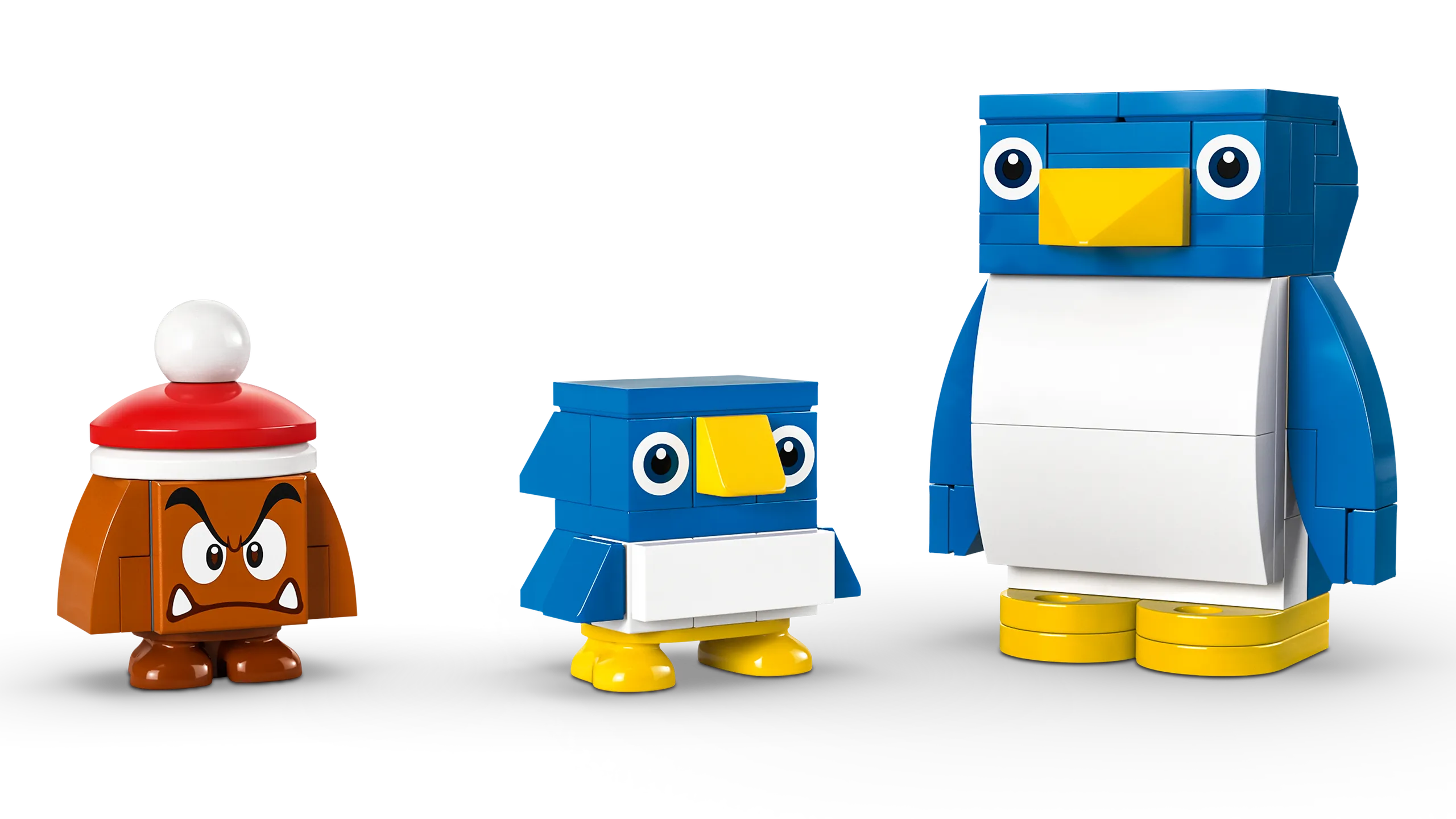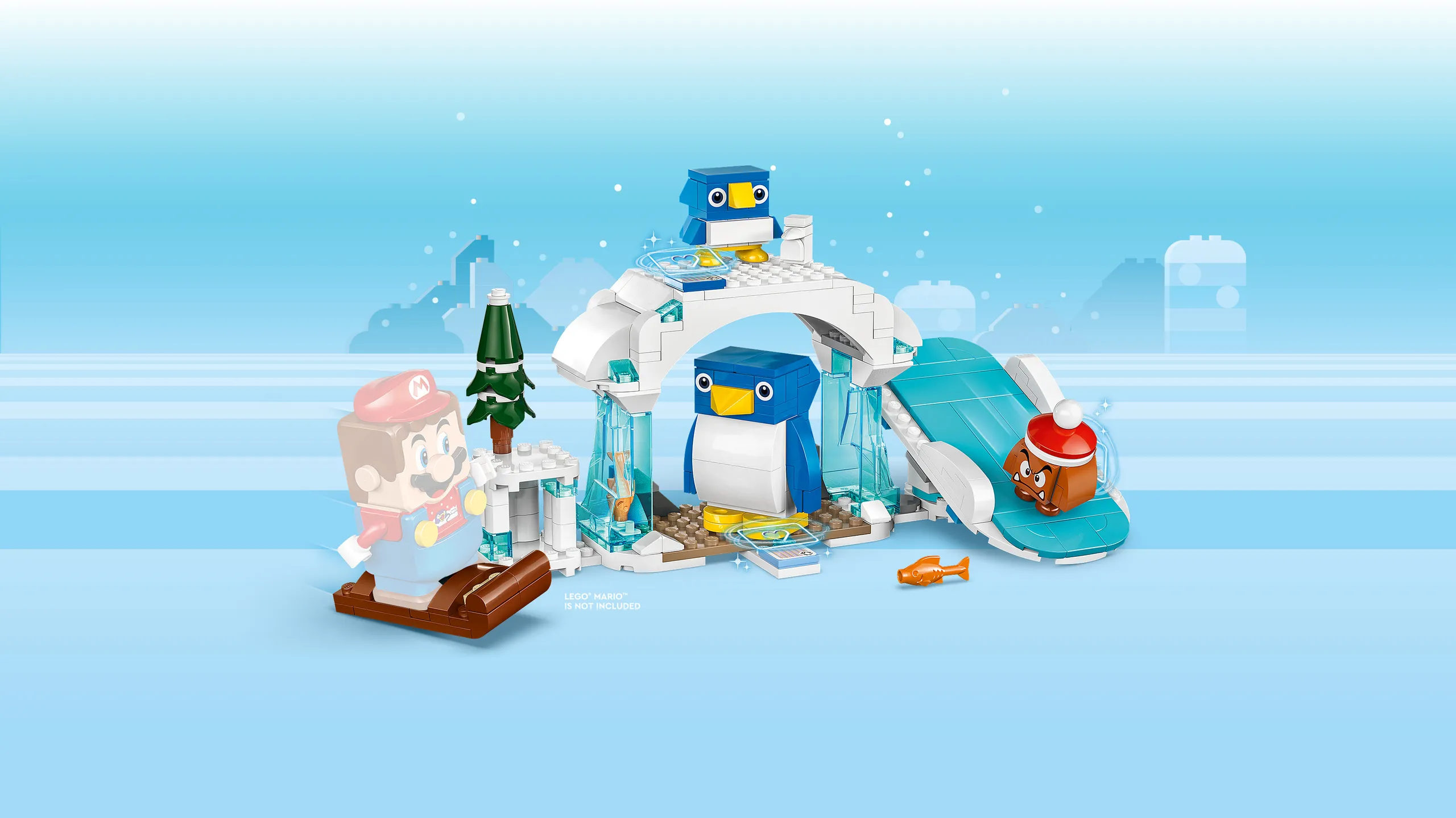 Join the penguin and baby penguin for a magical snow world adventure! Have fun together in the cave… but watch out for that Goomba. Sledge down the ice slide, then turn the slide into an ice rink for skating. And if you want an interactive digitaladventure, help LEGO® Mario™, LEGO® Luigi™ or LEGO® Peach™ (figures not included) reunite the baby penguin with its parent!