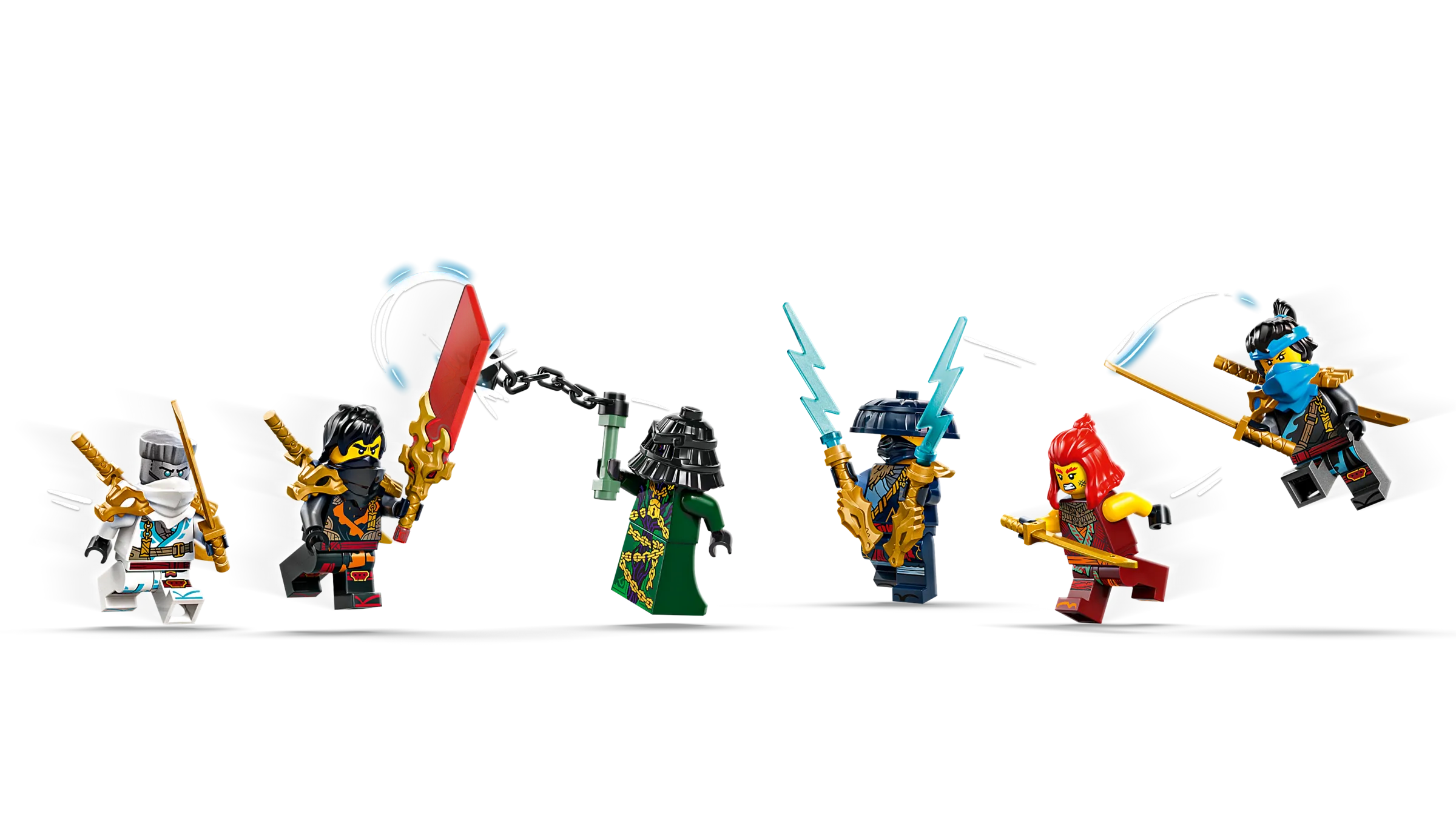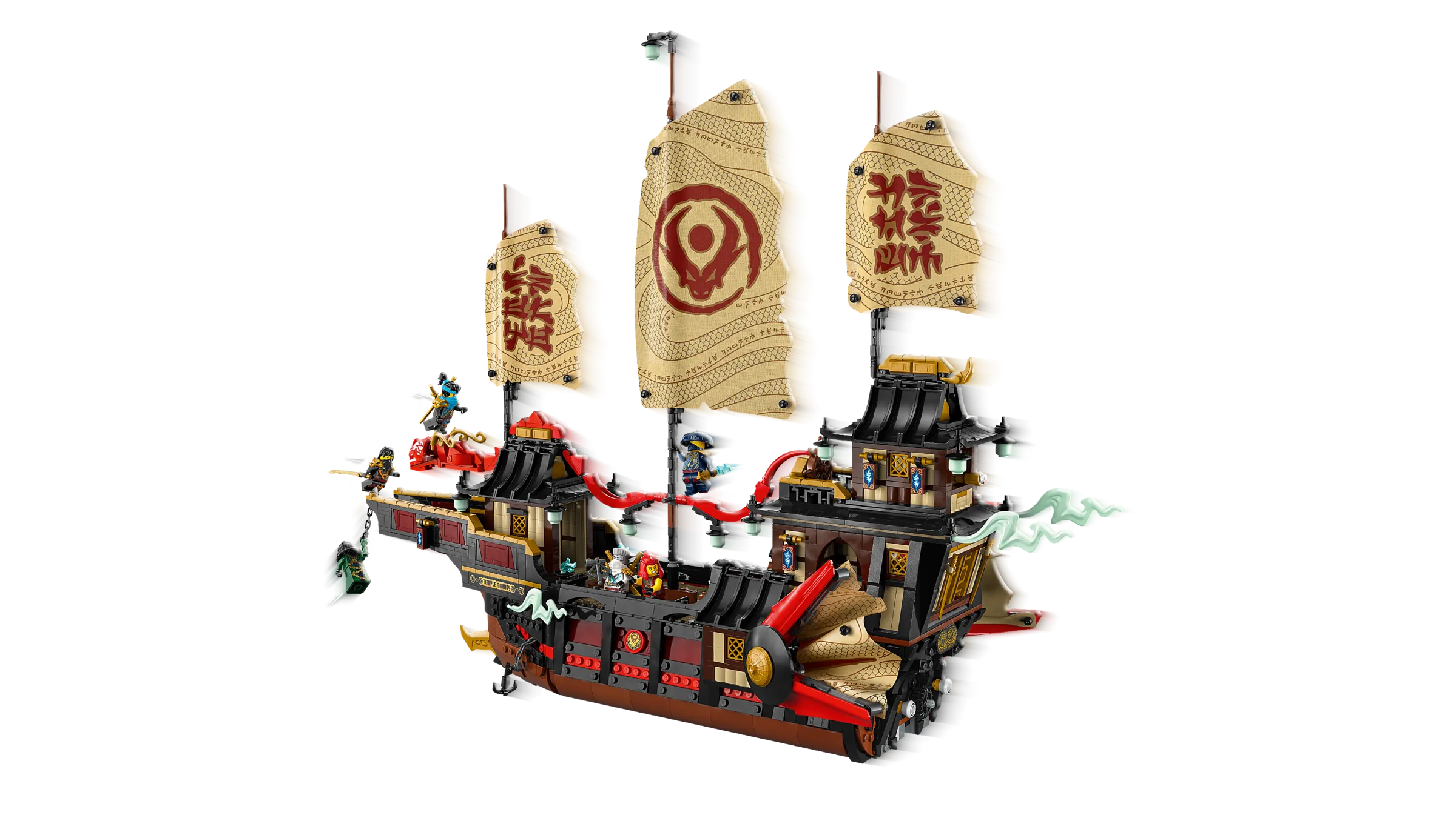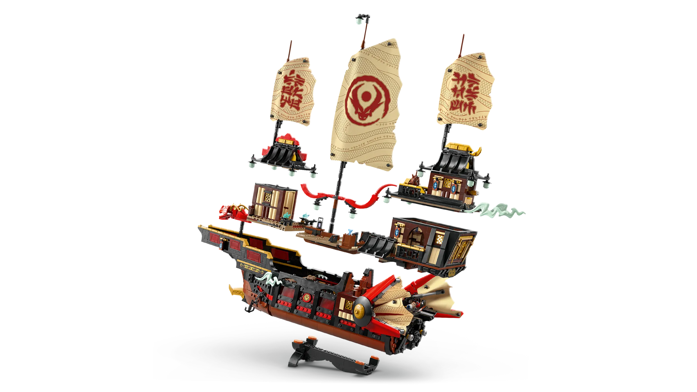 Set sail with your ninja heroes on this highly detailed LEGO® NINJAGO® The Temple Bounty model. The ship looks great on display, offers hours of storytelling and is packed with cool features, including a gear to turn the sails, removable roofs andfloors to gain access to the interior, a sushi bar and a secret computer. 6 minifigures are included to help you stage your own stories.