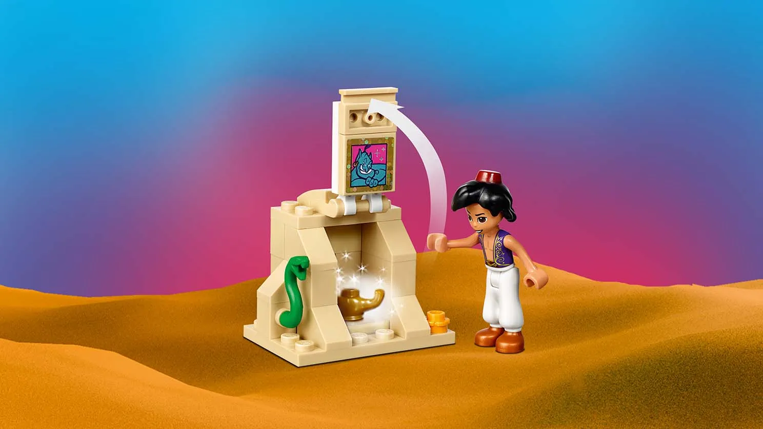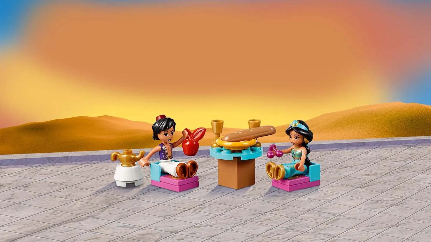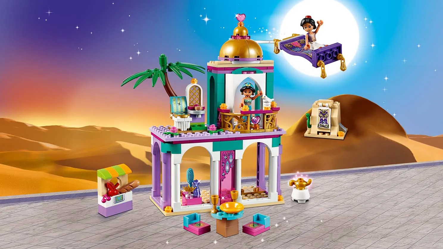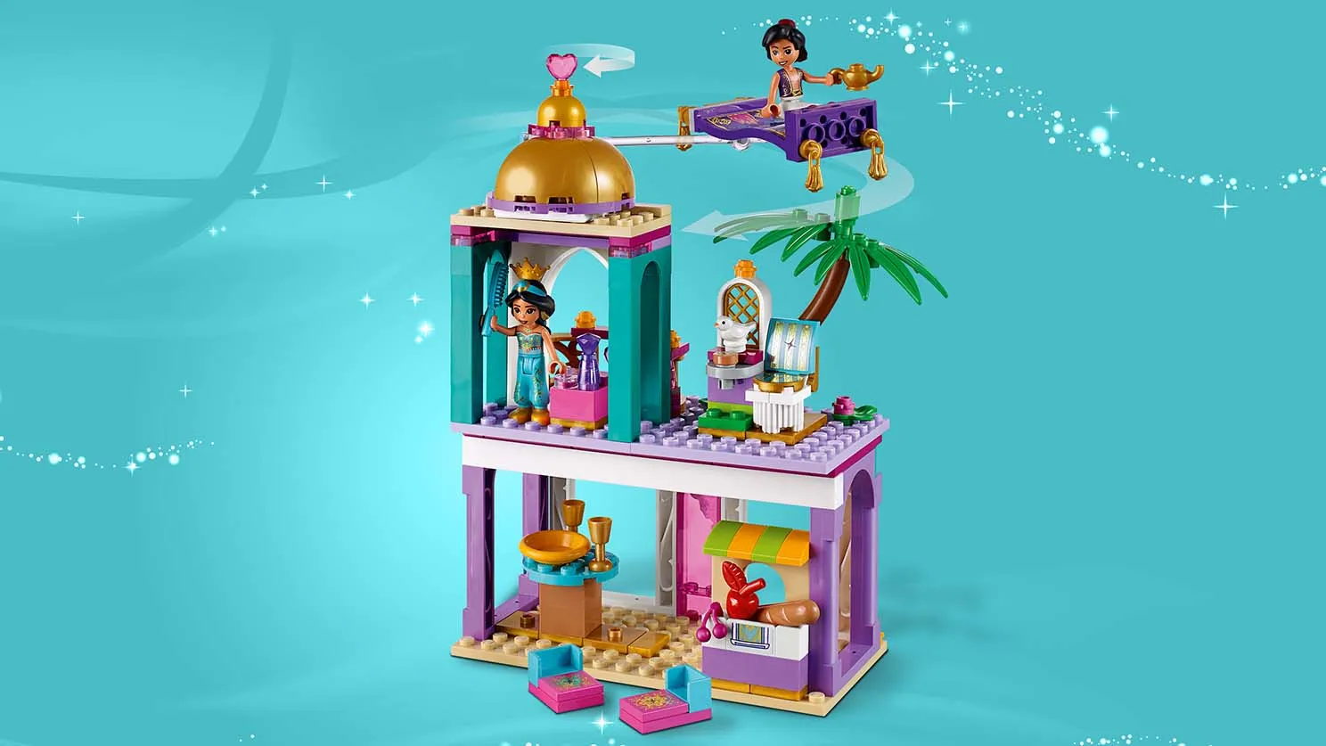 Fais un tour de tapis volant autour du palais en vivant les aventures au Palais de Jasmine et Aladdin. Aide Aladdin à foncer dans le marché, à passer à côté du serpent et à entrer dans la caverne aux merveilles pour trouver la lampe magique. Rejoue la vie de Jasmine Disney Princess dans le palais, puis aide-la à découvrir Aladdin sur son balcon et pars pour une balade romantique sur un tapis magique !