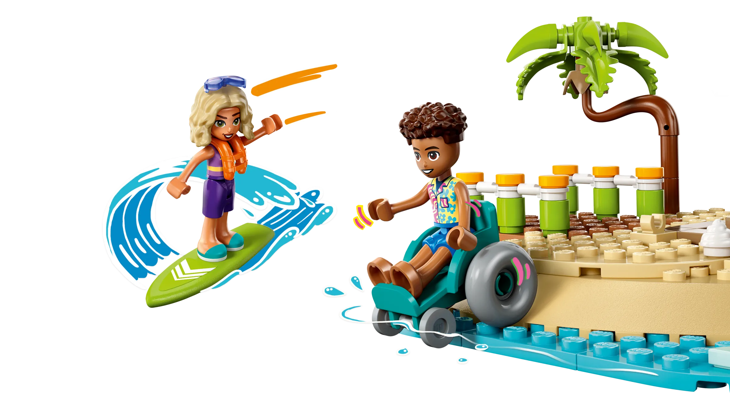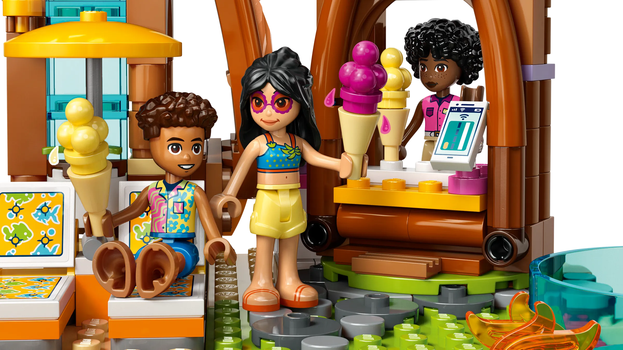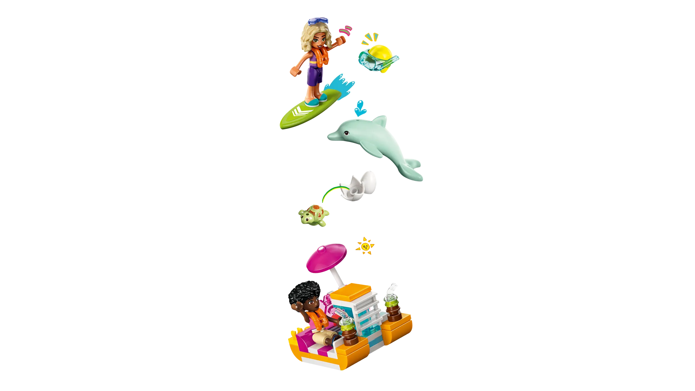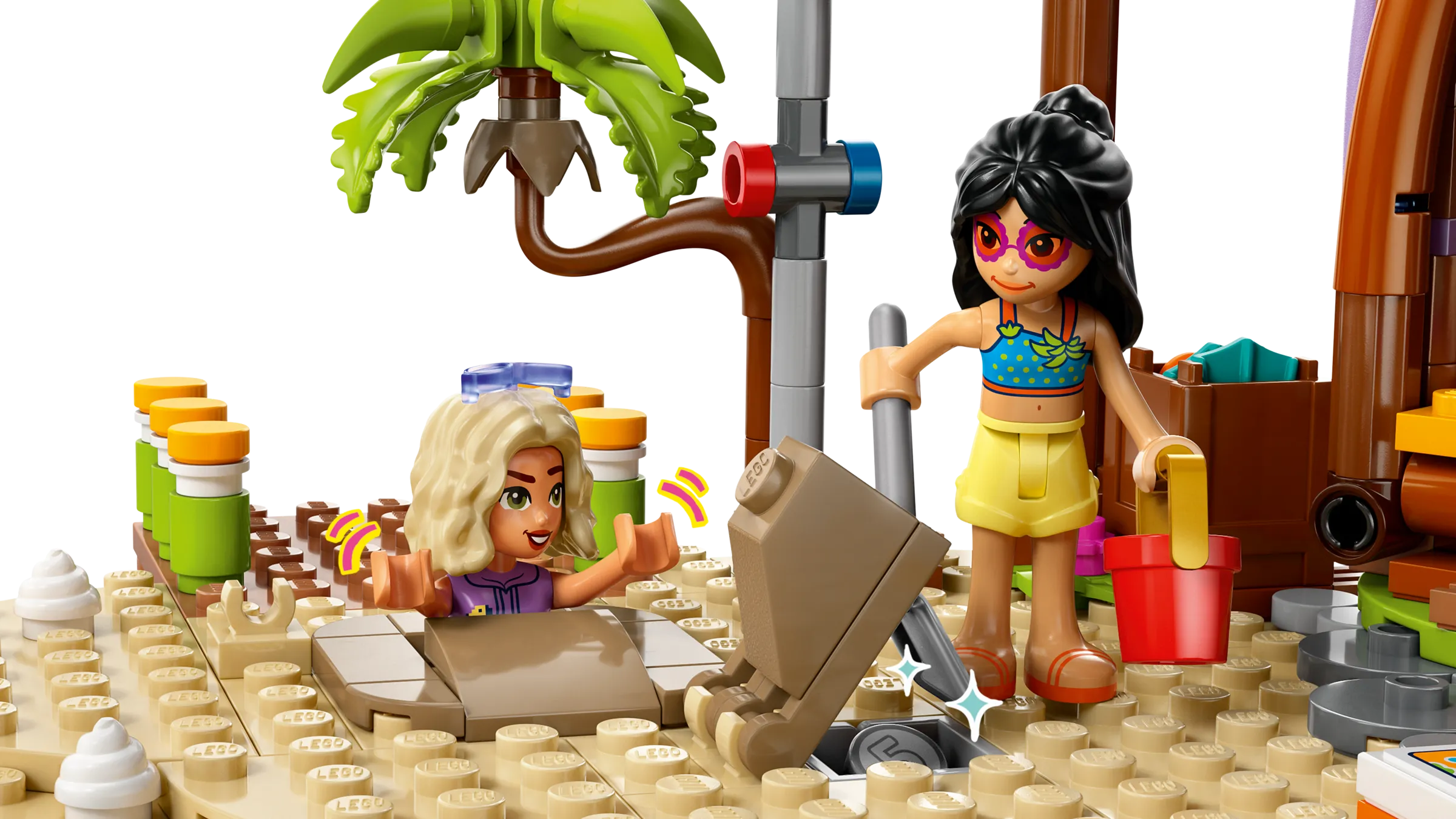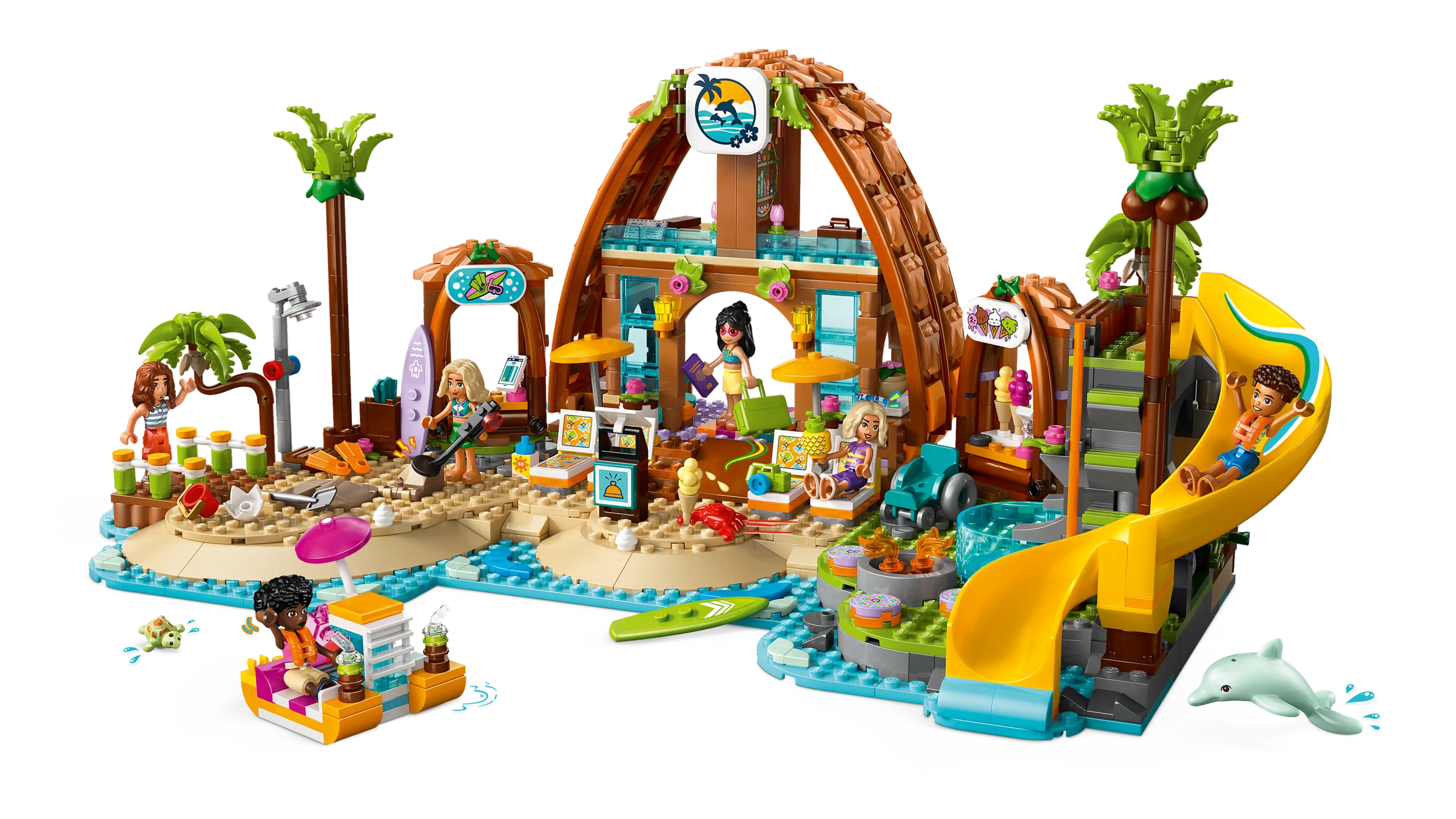 Crea ricordi con i tuoi amici nel resort sulla spiaggia. Costruisci il resort pieno di divertimento che Nova potrà esplorare con la sua famiglia. È ricco di attività in spiaggia e sport acquatici. Scopri un pedalò, uno scivolo, un chiosco di gelati, una piscina e un braciere. Fai attenzione alla tartaruga e al delfino e divertiti a costruire con i tuoi amici e familiari con l’app LEGO® Builder.