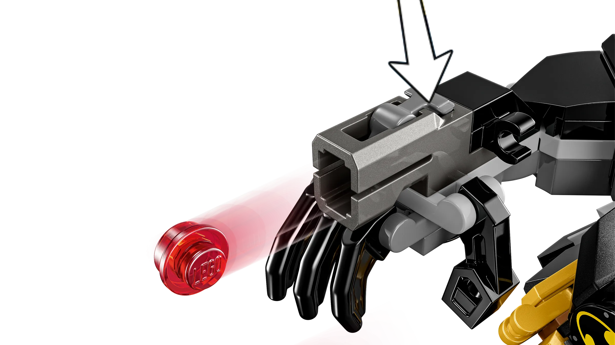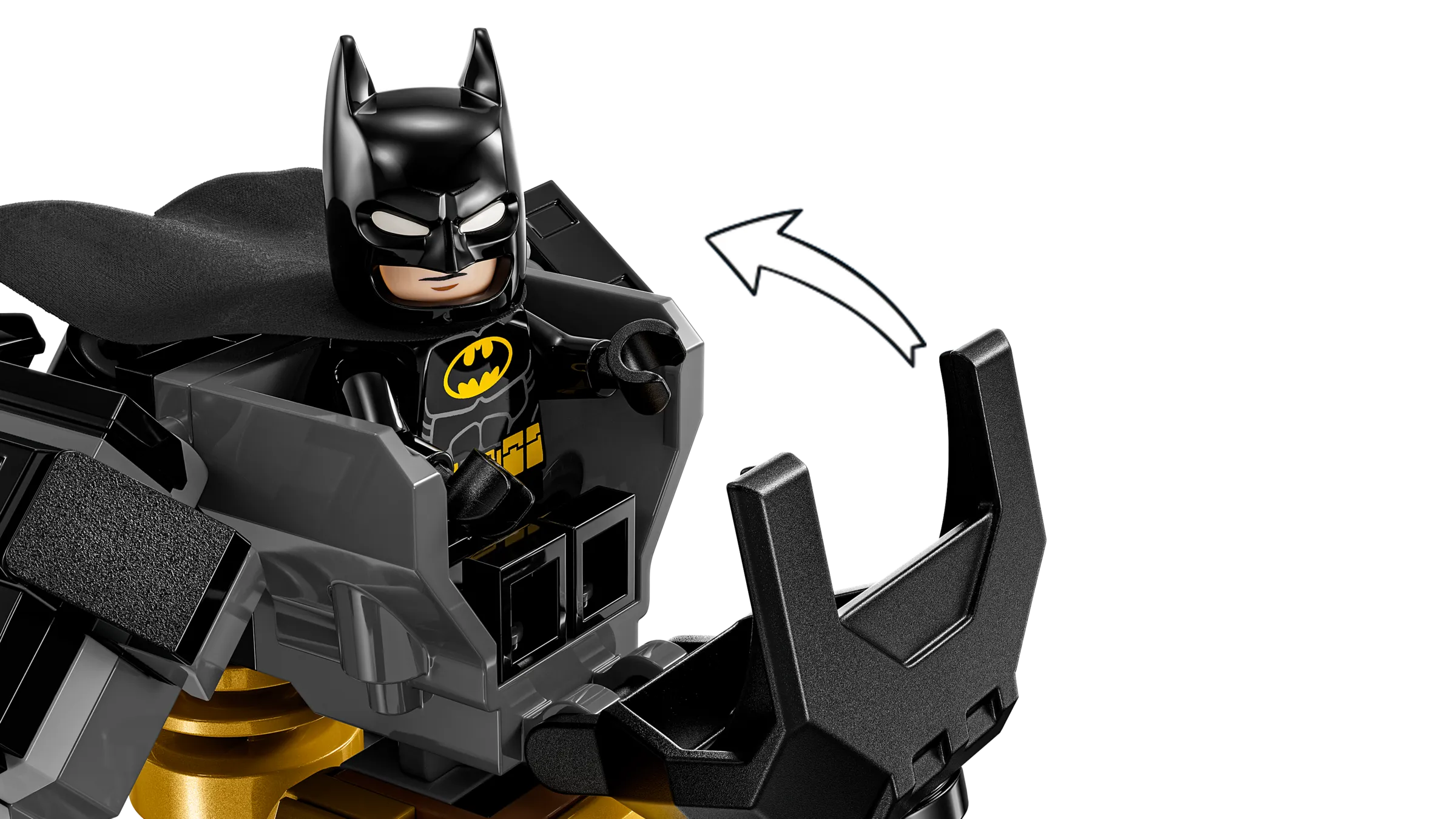 Skala upp brottsbekämpningen med Batman™ roboten! Öppna cockpiten och sätt minifiguren av Batman vid spakarna, och rör sedan robotens ledade armar, ben och händer för att ta dig an alla skurkar som kommer i din väg. Denna mäktiga robot tar äventyren med Batman till nya svindlande höjder med en gigantisk Batarang™, en knoppkanon och en jetpack!